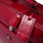 4-wheel leather trolley from The Bridge, crafted in premium Italian leather for timeless travel elegance.